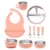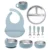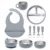 • Mess control: Silicone bib and cup reduce spills and stains during meals.
