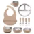 This set is ideal for breakfast, lunch, dinner, or snack time. Whether you’re at home or on the go, the pieces are lightweight yet durable, making them convenient for daily use. The training fork and spoon are designed for little hands to grip easily, while the bib and spill-resistant water cup help keep messes to a minimum. It’s the perfect companion for introducing solids and encouraging independent eating habits.
