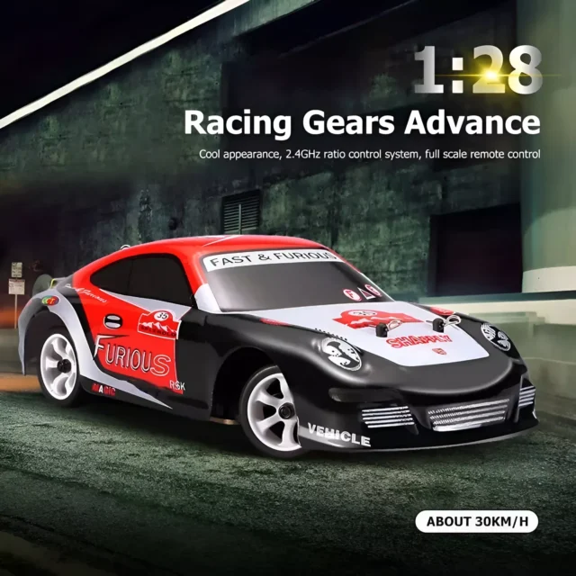 Get ready to ignite your child’s excitement and bring race-day energy home with this powerful 1:28 scale 4WD Mini RC Drift Car. Built for both on-road drifting and off-road adventure, this mini racing machine combines speed, control, and durability in one sleek design. With a top speed of up to 18.6 mph, a 4-wheel drive system, and a rugged alloy body, it’s designed for endless fun and hands-on learning for kids aged 14 and up—or even adults who love remote-controlled action.