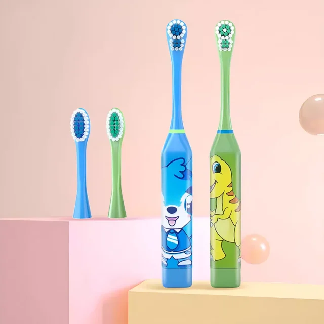 3PCS Kids Ultrasonic Electric Toothbrush Set – Cartoon Design, Ages 3-12