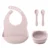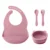 4PCS Silicone Baby Feeding Set with Bear Bowl, Bib, Spoon & Fork