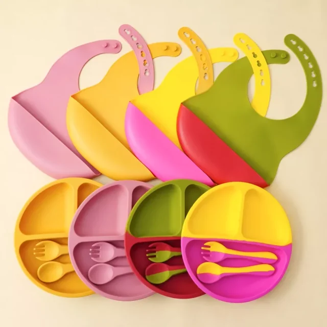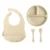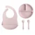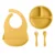 4PCS Silicone Baby Tableware Set with Suction Plate, Adjustable Bib, Spoon & Fork