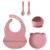 5PCS Silicone Baby Feeding Set with Suction Plate, Spoon, Fork & Bib
