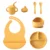 This complete dinnerware set features a suction plate, straw cup, fork, spoon, bib, and self-training utensils. The strong suction base keeps plates in place, preventing spills and reducing clean-up time. The soft straw cup encourages independent drinking while the silicone bib with deep pocket catches crumbs and drips.