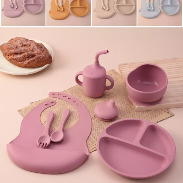 6PCS Silicone Baby Feeding Set with Suction Plate, Straw Cup & Training Utensils