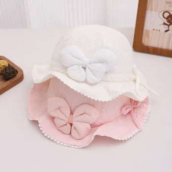 Large Brim Bowknot Baby Hat for Girls – Cotton Fisherman Cap for 1-4 Years