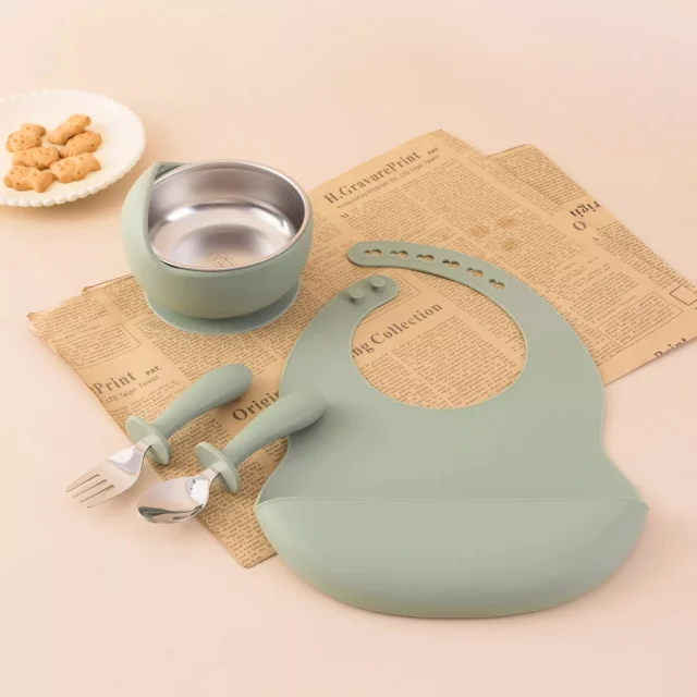 What makes this feeding set special is its thoughtful design. Unlike ordinary tableware, the detachable suction bowl keeps food stable while your baby explores eating independently. The waterproof silicone bib saves you time on laundry, while the ergonomic utensils help develop fine motor skills. With its modern look and practical features, this set isn’t just mealtime gear—it’s a parent’s best friend during the feeding journey.