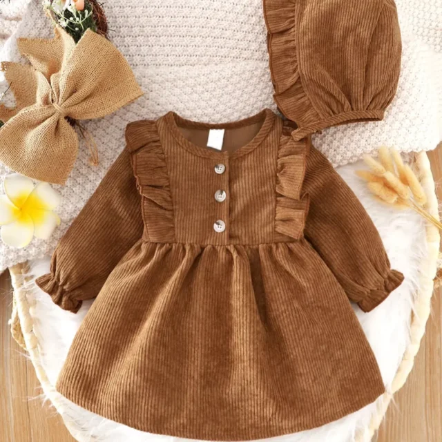 Wrap your baby girl in warmth, style, and timeless elegance with our Baby Girl Autumn Knit Dress. Designed to bring together vintage charm and everyday comfort, this coffee brown dress is the perfect choice for those cooler months when you want your little one to look her absolute best while staying cozy.