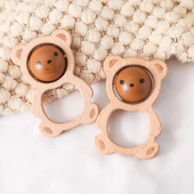 Baby Wooden Bear Rattle Teether Toy – BPA-Free Music & Soothing Gift for Newborns