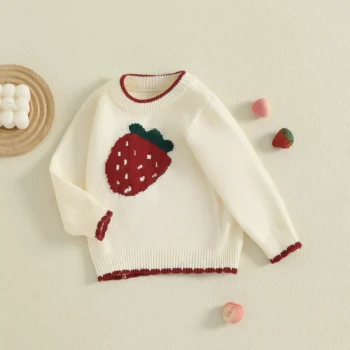 Baby Girl Strawberry Knit Sweater Long Sleeve Pullover