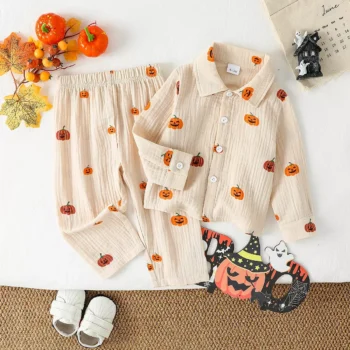 Baby Halloween Pumpkin Outfit Set – Cotton Long Sleeve Tops & Pants