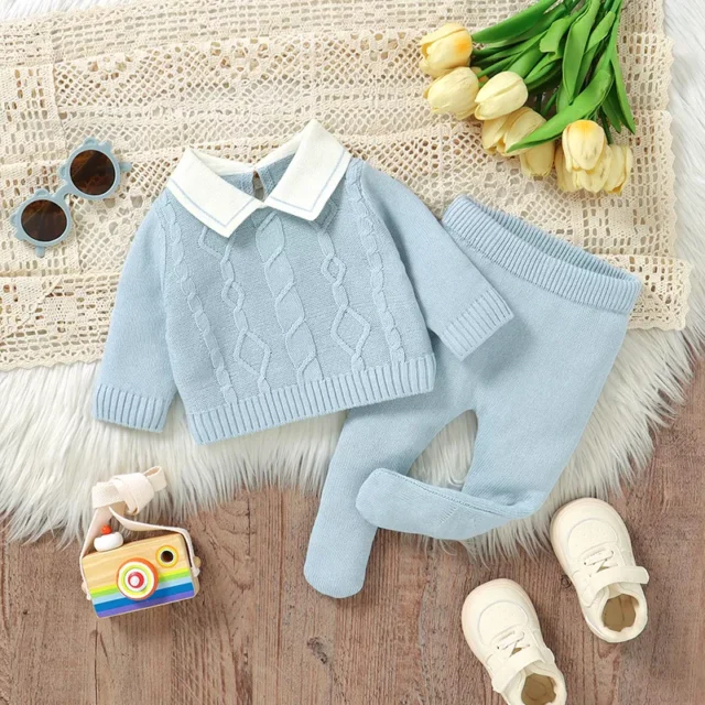 Dress your little boy in comfort and style with this adorable newborn baby clothes set. Made from 100% pure cotton, this knitted outfit features a soft, breathable fabric that keeps your baby cozy during cool spring, autumn, and winter days. Designed especially for infants aged 0 to 9 months, the long sleeve sweater and matching pants provide full coverage, including a foot wrap to keep tiny toes warm. The solid color and turtleneck collar create a timeless look that’s both fashionable and practical.