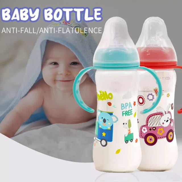 Cute 250ml Cartoon Baby Bottle with Handle