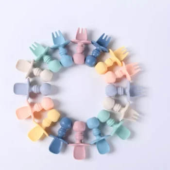 Silicone Baby Training Spoon and Fork Set – Infant Self Feeding Cutlery