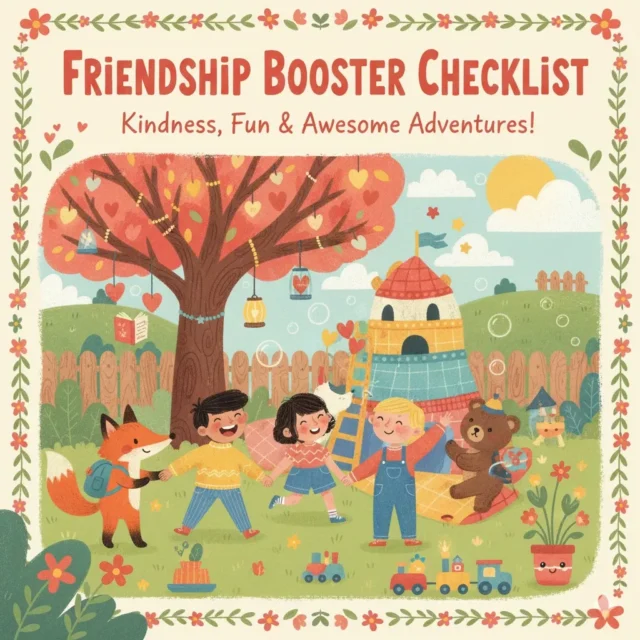 Making friends can feel tricky for kids, but the right guidance can turn every playground visit, classroom interaction, or playdate into a chance to connect. The Friendship Booster Checklist: Help Your Child Make Friends with Ease is a digital download designed to give parents simple, actionable tips for helping child make friends. Packed with fun, practical strategies, this resource helps your child gain confidence, practice essential social skills, and create meaningful friendships that last.