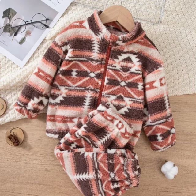 Whether it’s for school, outdoor adventures, or casual weekends, this geometric print jacket and pants set is the perfect choice. Stylish, comfortable, and practical, it’s everything parents and kids look for in autumn clothing. Give your little one the gift of warmth and fashion this season—add this must-have set to your cart today!