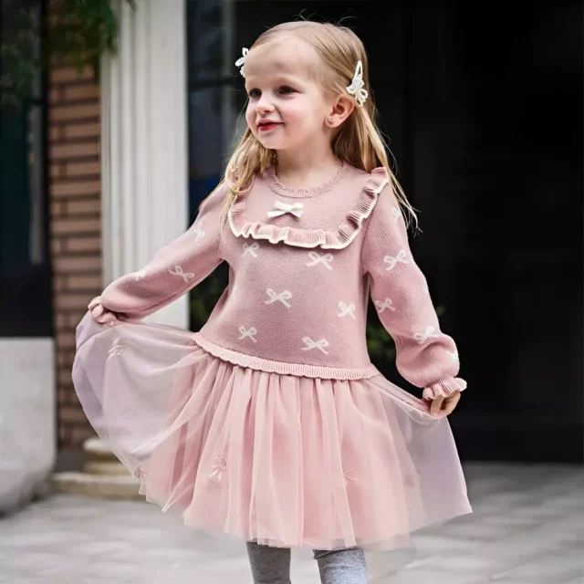 This dress is more than just clothing – it’s a piece that makes your little one shine. Whether layered with tights and boots for outdoor play or paired with ballet flats for a party, it adapts beautifully to any setting. Its simplicity, paired with thoughtful design, makes it stand out as a staple for the season.