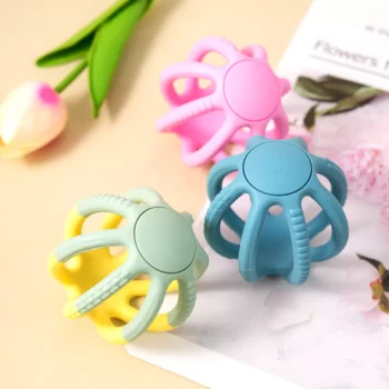 Soft Silicone Baby Teether Ball – Hollow Design, Safe & Squeezable