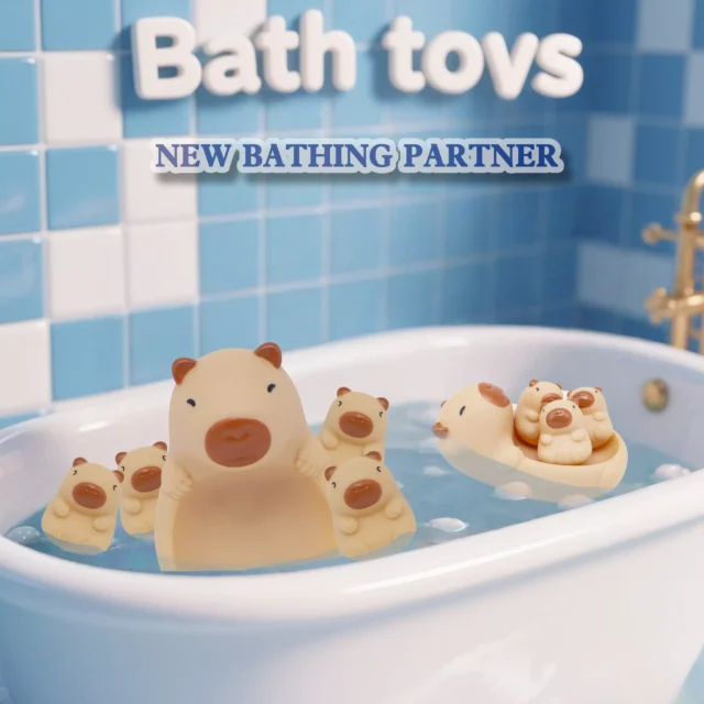 This bath toy set stands out with its unique capybara character — a fun twist on traditional bath animals — paired with a sweet dolphin buddy and functional fishing net. With no small detachable parts and an easy-to-clean surface, it’s as practical for parents as it is magical for kids.